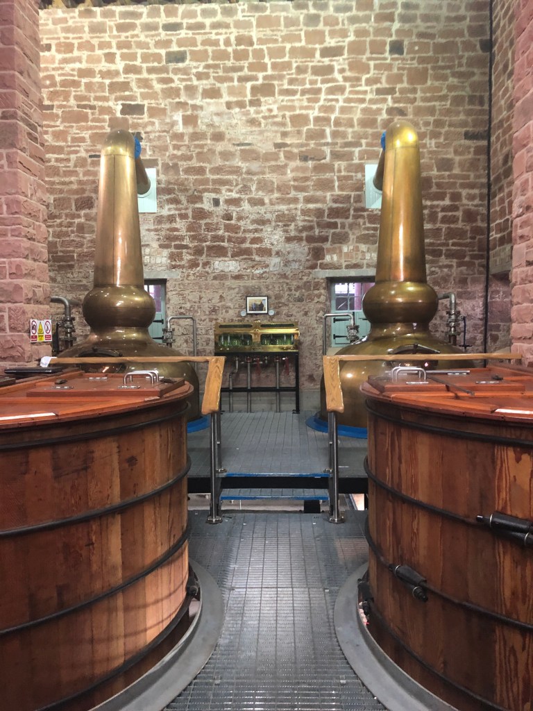 Si vous allez en Ecosse, la visite d’une distillerie de whisky est un incontournable ! Si je dois vous conseiller une distillerie à faire ce serait celle-ci. Au Sud de l’Ecosse, se trouve la distillerie « Annandale ». Le lieu m’a tout de suite plu : au milieu des champs et de la Nature écossaise. Le sublime portail en fer forgé représentant des germes de Malte est magnifique. Cette ancienne distillerie impeccablement rénovée montre le savoir faire et le sérieux des personnes qui la font toujours fonctionner. Les enfants sont admis lors de la visite (ce qui n’est pas le cas dans certaines distilleries). Notre charmante guide nous a expliqué le processus de fabrication du whisky écossais.