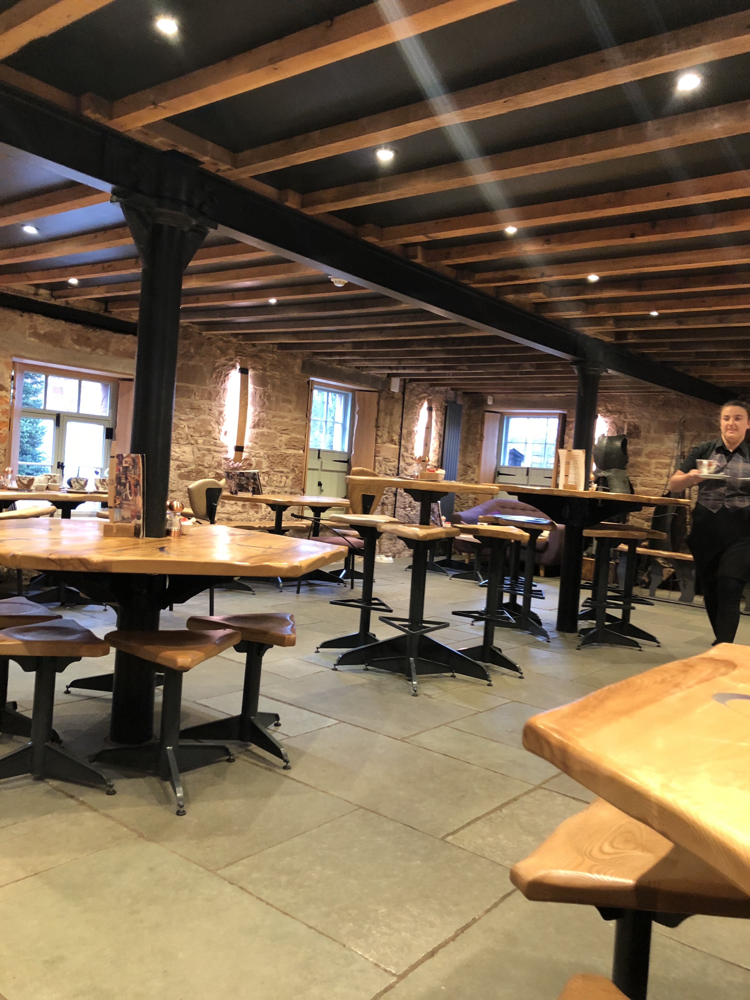 Dans une aile du bâtiment de la distillerie Annandale, se trouve un Coffee Shop. Deux nobles matériaux y sont présents ainsi que dans toute la distillerie. Du bois massif sculpté et du fer forgé (par un artisan très probablement). C’est beau à voir ! En plus de cette ambiance chaleureuse, nous avons bien mangé. C’est la première fois durant notre visite en Ecosse que nous avons testé des produits traditionnels : du saumon fumé (fait dans la ville voisine) et du haggis en tourte (spécialité écossaise à base de viande). Tester aussi « The Scotish cake » au whisky.