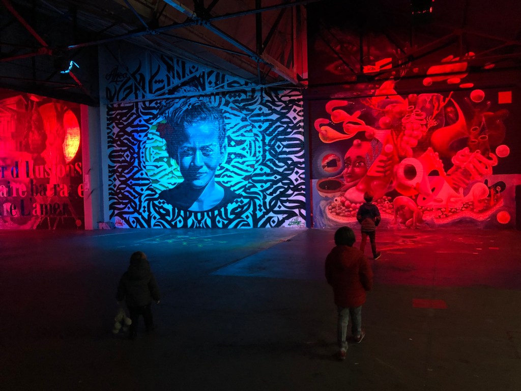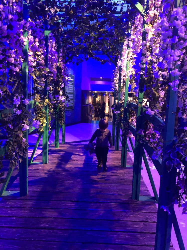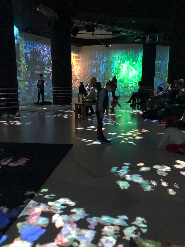 Il s’agit d’une exposition à la Galerie Horta (place de l’Espagne). Le peintre Monet est à l’honneur. Ces œuvres sont projetées sur les murs et le sol d’une très grande pièce. Mais surtout ses peintures prennent vie. Les oiseaux et poissons sont en mouvement et se baladent un peu partout. De la musique douce et des tapis au sol nous invitent à la relaxation. L’entrée me paraît un peu chère… mais les enfants ont adoré !