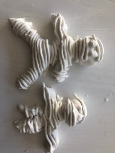 La momie en pâte durcissante. Utiliser une pâte durcissante (trouvée chez Action). Mais vous pouvez aussi utiliser de la pâte à modeler, de la pâte à sel… Demander à votre enfant de faire un bonhomme. Ensuite grâce à une machine de pâte à modeler, créer les bandelettes. Placer celle-ci sur le bonhomme sans oublier de garder une place pour les yeux.