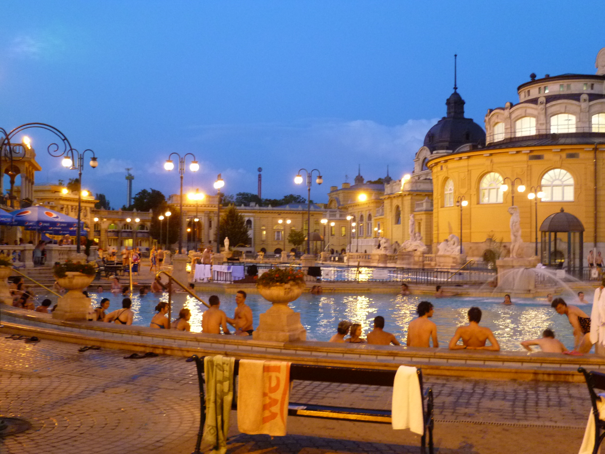 Les Thermes Széchenyi sont les plus grands bains de Budapest. Les bains ou thermes font partis de la culture hongroise depuis le début de son Histoire. D’abord les Celtes, les Romains et les Turcs ont chacun contribué à faire évoluer cette institution dans le pays et bien sûr à Budapest. Ce sont nos thermes préférées. A chacune de nos visites à Budapest, nous y sommes retournés. Au milieu des bois, elle s’impose par son architecture et sa couleur jaune. Brillamment entretenue, ses 21 bains (tous mixtes), ses vestiaires, ses colonnes en marbre nous rappelle sa longue histoire.