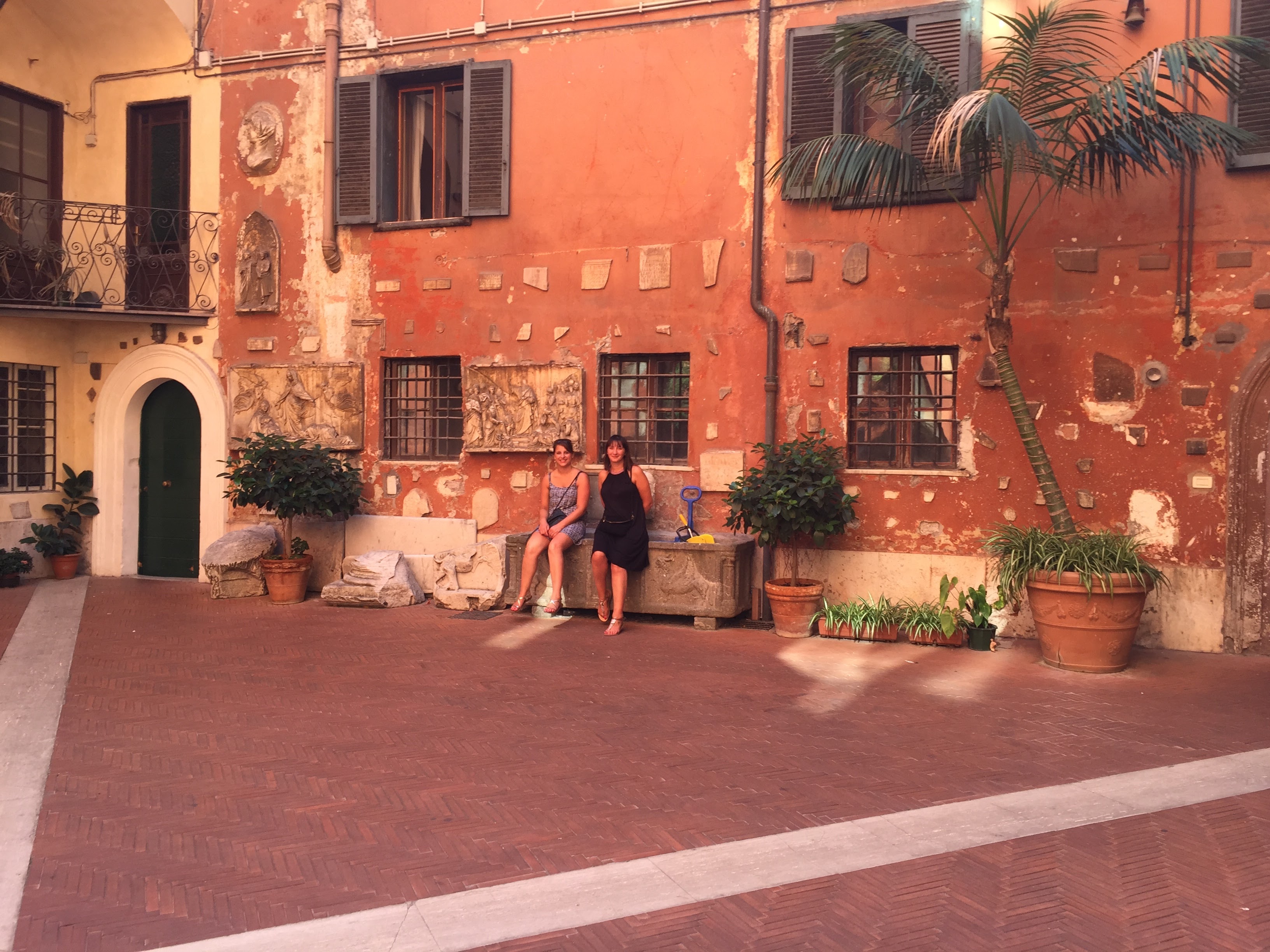 Nous avons mal aux pieds. Il faut prévoir de bonnes baskets pour une journée de marche dans la ville de Rome. C’est dans le parc derrière la « piazza del Piccolo » que nous nous sommes reposées. C’est un endroit est très calme. Idéal pour faire une pause avant de repartir dans la jungle urbaine.