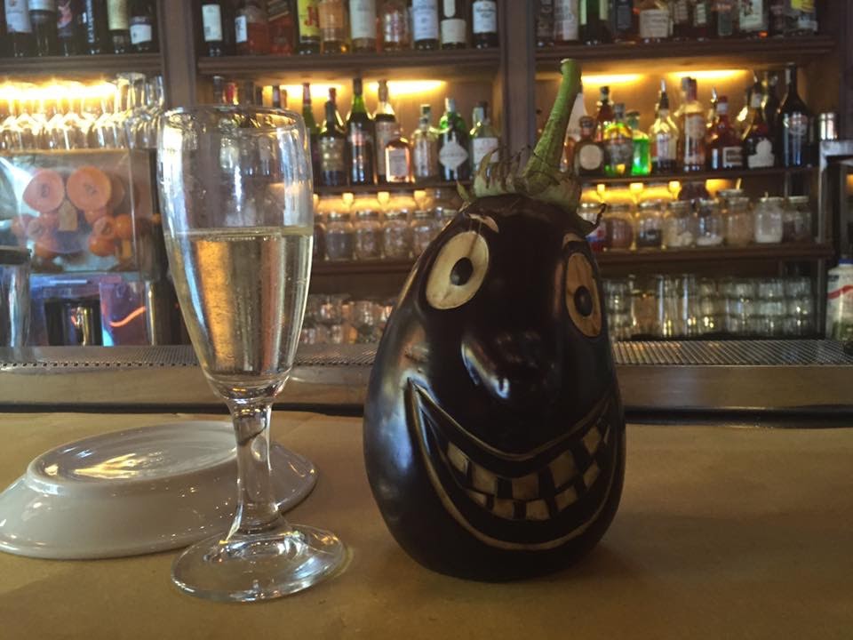 Cette petite aubergine offerte par le serveur fut notre mascotte pour le week-end. « Rémigine » n’a malheureusement pas survécu au voyage.
