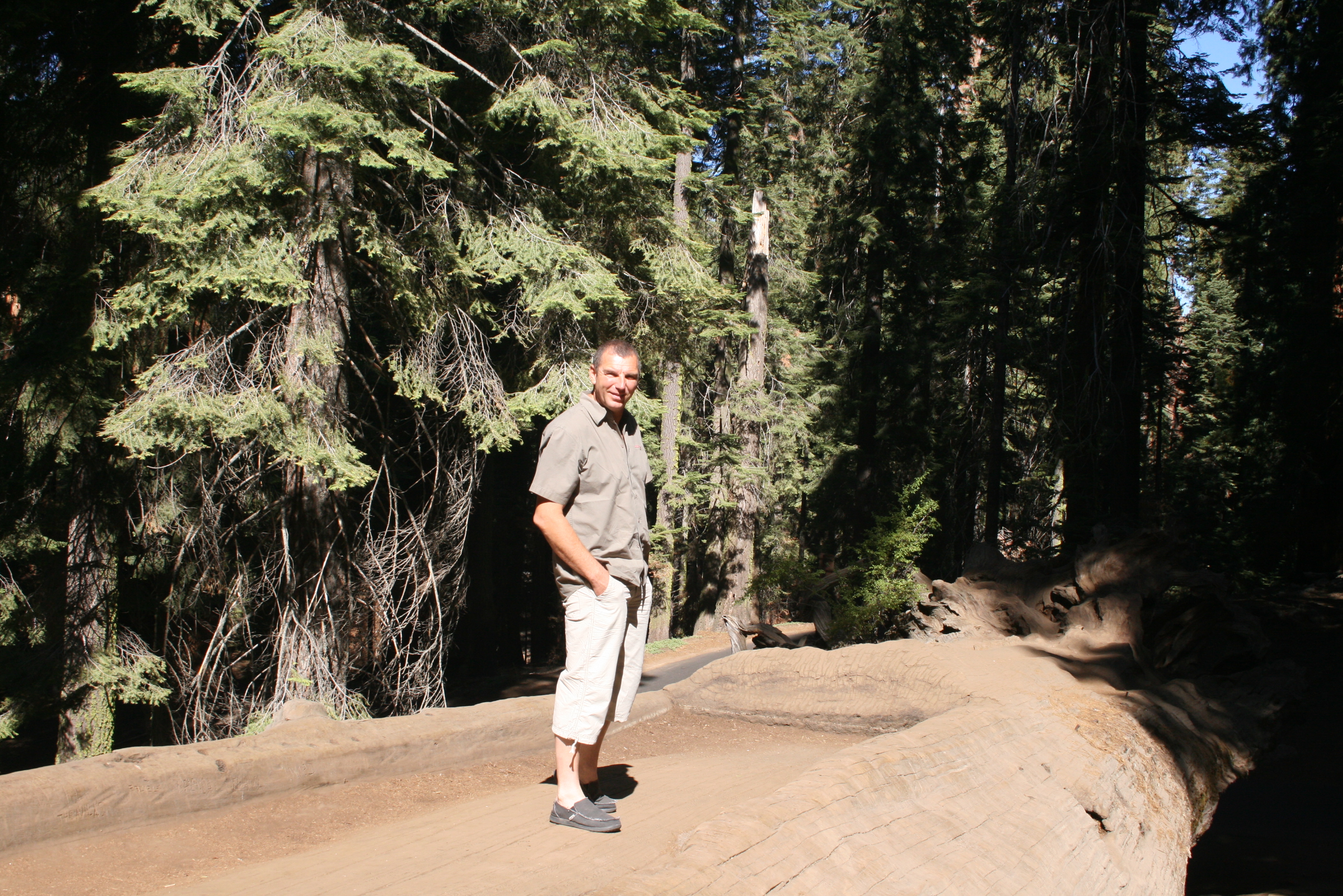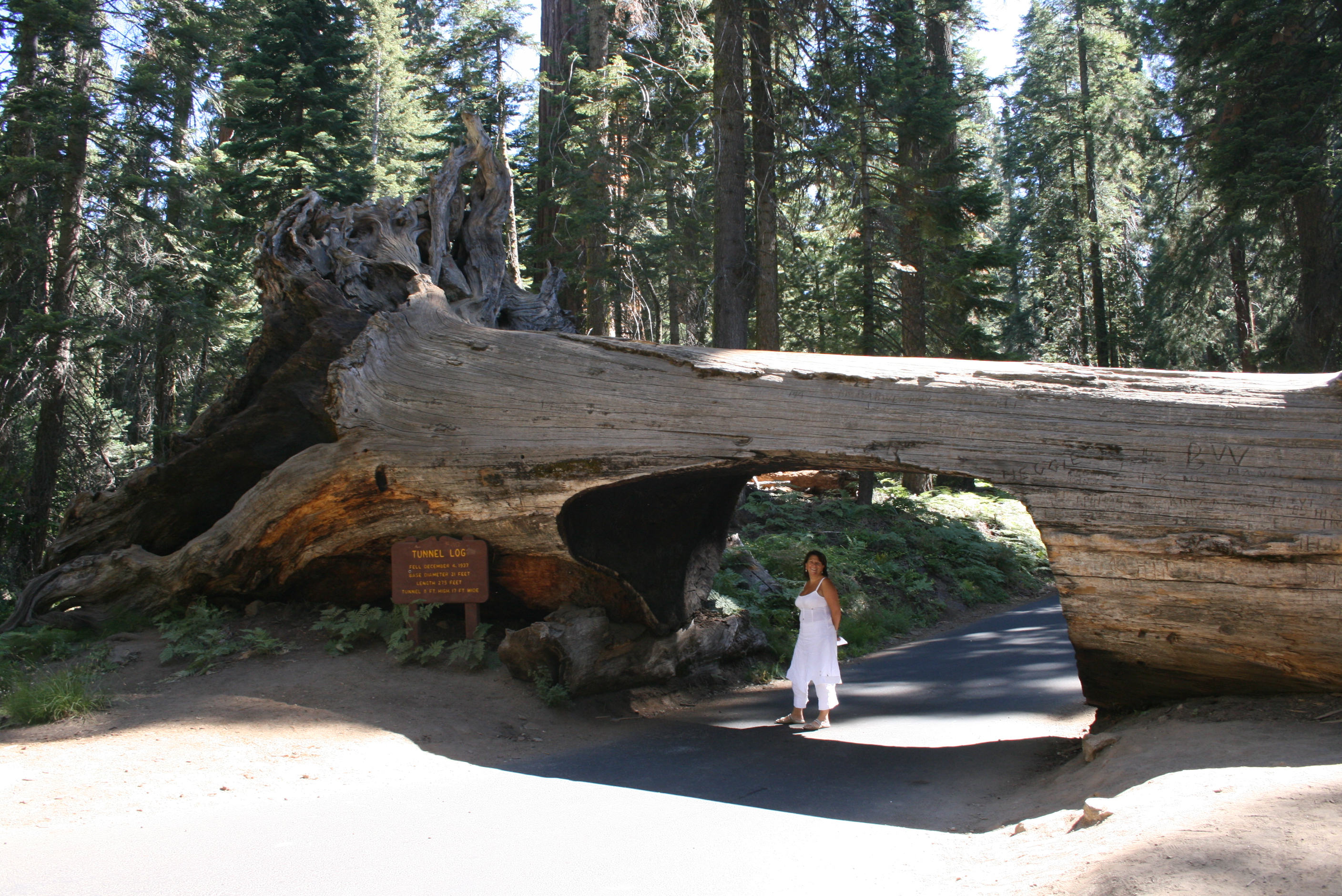 Certains séquoias sont tombés sur les chemins. Ils ont donc été creusés pour permettre aux voitures de passer.