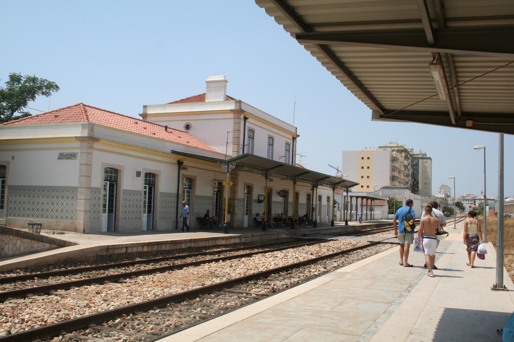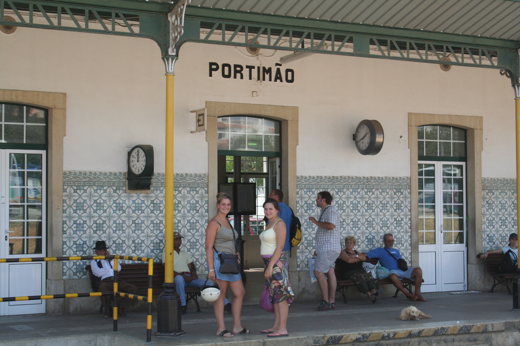 Nous sommes arrivĂ©s par la gare de Portimao. Cette gare est joliment dĂ©corĂ©e d’azulejos. Un perroquet nous accueille dans une ambiance dĂ©contractĂ©e.