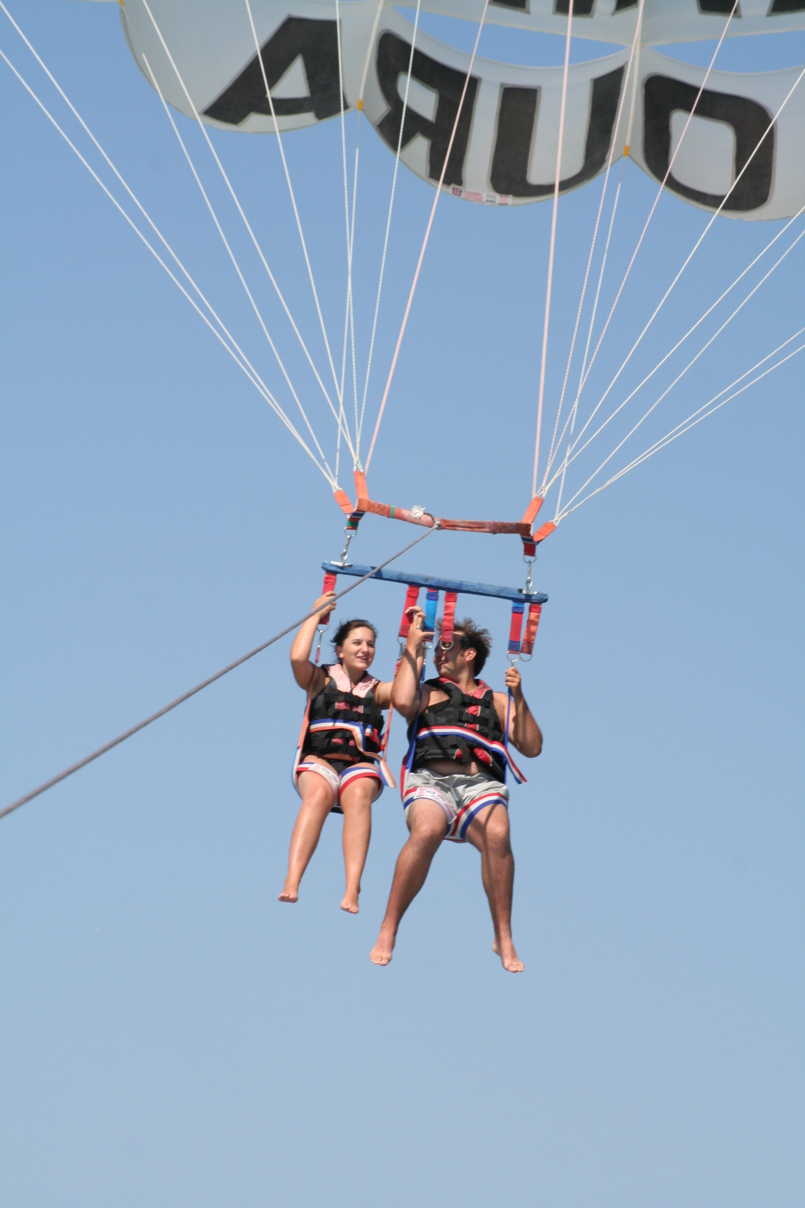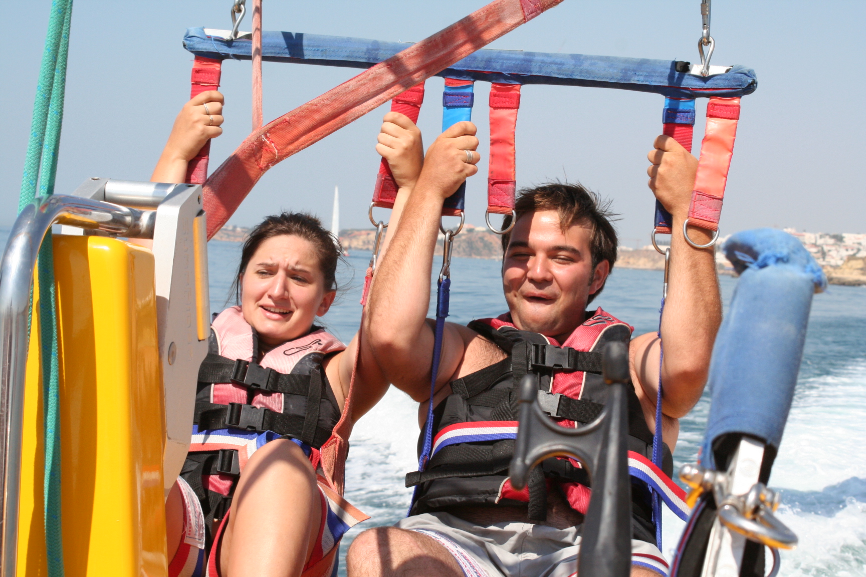 Il existe de trĂšs nombreuses activitĂ©s en Algarve. Souvent liĂ©es aux activitĂ©s nautiques, nous avons essayer le parachute ascensionnel. Une premiĂšre pour nous. C’est impressionnant d’ĂȘtre soulevĂ©s dans les airs. En plus de la sensation, vous dĂ©couvrirez un nouveau point de vue sur la cĂŽte et les plages de l’Algarve.