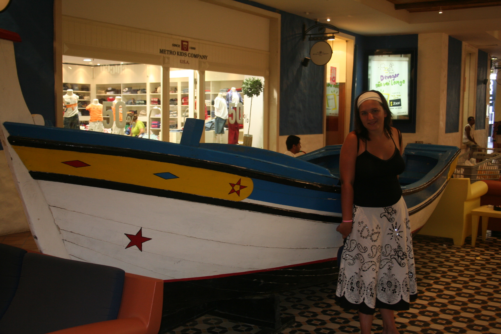 Les centres commerciaux au Portugal sont trĂšs beaux et gĂ©nĂ©ralement en extĂ©rieur. Comme une petite ville avec un grand choix de magasins. A lâĂ©tage, les restaurants sont ouverts sur un espace commun. Ainsi chacun fait son choix et on se retrouve au milieu pour manger. Ce concept vient des Etats-Unis.